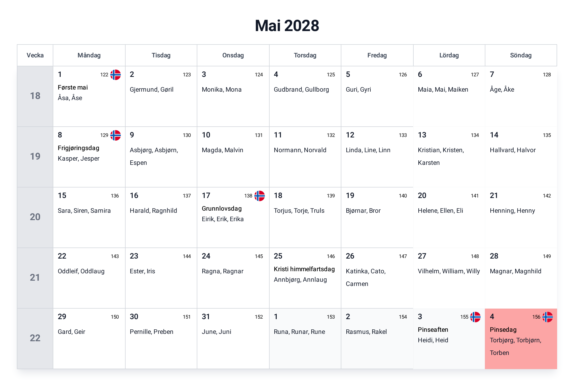 Kalender mai 2028